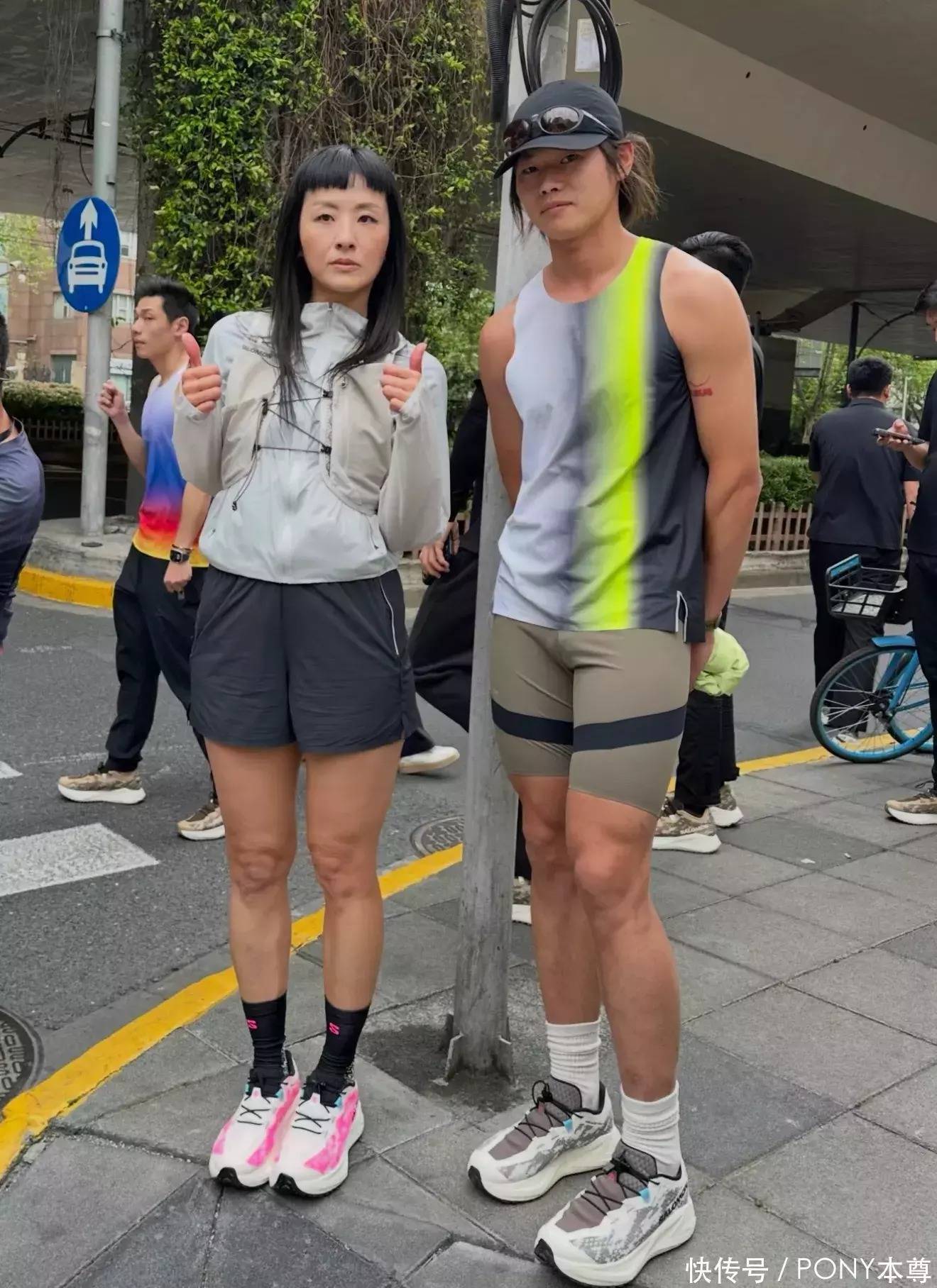 同框路人,生图状态好!她参加运动品牌的活动,打扮的也很另类!比如设计感十足的灰色夹克,搭配深灰色短裤,颇有日系街头感!